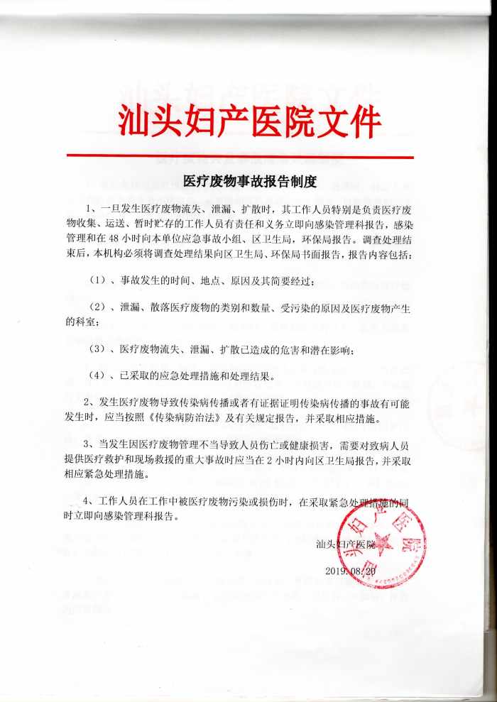 按照相关政策规定,现对汕头妇产医院2021年医疗废物的管理制度,医疗废物产生、处置年报表,医疗废物泄露、扩散应急预案演练等环境信息进行公示,接受公众监督……... <详情>